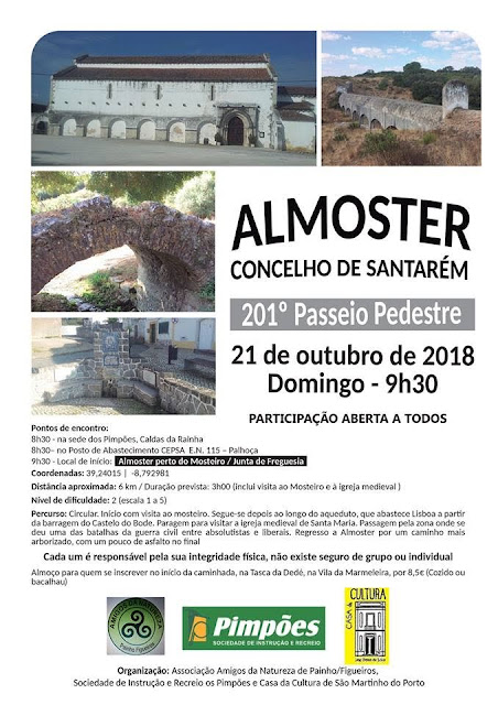 9h30 - Local de início: Almoster perto do Mosteiro / Junta de Freguesia Coordenadas: 39,24015 | -8,792981